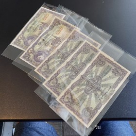 ธนบัตรแบบ 5 ทางรัฐบาลไทยได้สั่งพิมพ์ธนบัตรจากประเทศญี่ปุ่น ธนบัตรแบบ 5 จะมีความแตกต่างจากธนบัตรรุ่นอื่น คือ พระบรมฉายาลักษณ์ถูกย้ายมาอยู่ทางฝั่งขวามือตามแบบของญี่ปุ่น เมื่อเกิดสงครามมหาเอเชียบูรพา ทำให้การขนส่งเป็นไปด้วยความยากลำบาก มีธนบัตร 10 บาท ที่พิมพ์เสร็จได้ถูกขนส่งไปไว้ที่สิงคโปร์ ผ่านทางรถไฟมายังกรุงเทพ เพื่อมาให้ทางรัฐบาลไทยพิมพ์หมายเลขและลายเซ็นรัฐมนตรีกระทรวงการคลัง ข่าวนี้รั่วไหลไปสู่แก็งค์หัวขโมย เมื่อรถไฟมาถึงสถานีบ้านฉาง (ห่างจากสุราษฎร์ธานี ประมาณ 25 กิโลเมตร) ได้ถูกหัวขโมยงัดตู้แล้วถีบกระสอบใส่ธนบัตรลงมา ต่อมาธนบัตรชุดที่ถูกขโมยไปนั้นได้ถูกปลอมแปลงลายเซ็นแล้วนำออกใช้ จนข่าวไปถึงกระทรวงการคลัง จึงแจ้งว่าธนบตรชุดดังกล่าวเป็นธนบัตรที่ไม่ถูกกฎหมาย แต่เพื่อแก้ปัญหาการขาดแคลนธนบัตรในขณะนั้น จึงนำมาแก้ราคา โดยใช้หมึกสีดำพิมพ์ทับชนิดราคา 10 บาท กลายเป็นชนิดราคา 50 สตางค์แทน นักสะสมเรียกธนบัตรรุ่นนี้ว่า “ธนบัตรไทยถีบ”
